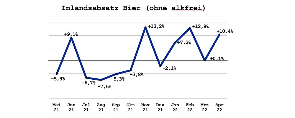 Bei einem Arbeitstag weniger als im gleichen Vorjahresmonat haben die deutschen Brauer und Bierlager im April 4,7 % mehr Bier abverkauft als noch 2021 - und das trotz eines dramatischen Einbruchs von -35,9 % beim Export in Drittländer (v.a. Russland). Im Inland hingegen wurden laut den aktuellen Zahlen des Statistischen Bundesamtes 10,4 % mehr Bier verkauft.