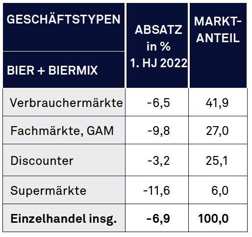 Das Corona-Pendel schlägt im Einzelhandel zurück: Bierumsätze wanderten im ersten Halbjahr retour in die Gastronomie. Wer in der Pandemie besonders punkten konnte, wie z.B. Getränkefachmärkte, verbucht jetzt das höchste Minus (übertroffen nur von den Supermärkten).