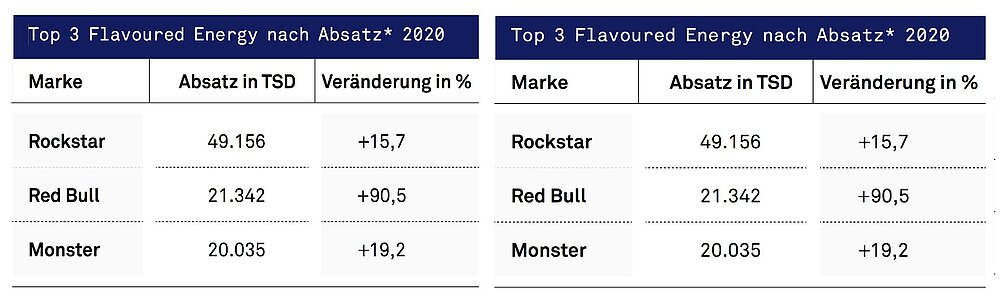 Dass Red Bull letztes Jahr im Handel im Vergleich zur Konkurrenz überdurchschnittliche Absatzzuwächse feiern konnte, dürfte neben der Spätzünder-Kategorie Editions zudem der geschlossenen Gastronomie, wo Rockstar und Monster keine Rolle spielen, geschuldet gewesen sein. Der geneigte Gastro-Gänger griff so öfter mal im LEH zur blau-grauen Dose.