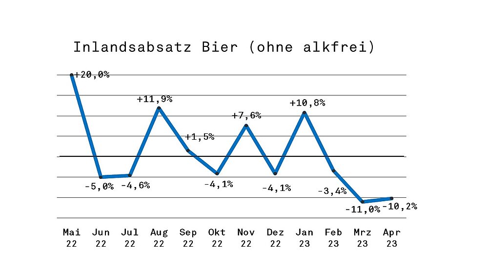 Bereits der März 2023 war mit -8,6% zu Vorjahr gesamt und -11,0% im Inland schwach ausgefallen. Ein Fehler beim Wert für Sachsen-Anhalt im März wurde mittlerweile vom Statistischen Bundesamt korrigiert, dadurch hat sich das Minus minimal relativiert: Durch die falsche Zahl standen für März 2023 zu Vorjahr ursprünglich -10,9% gesamt und -13,6% Inland zu Buche. Aufgelaufen bedeuten die 26,126 Mio hl in den ersten vier Monaten 2023 ein Minus zum Vorjahr von 3,4%.